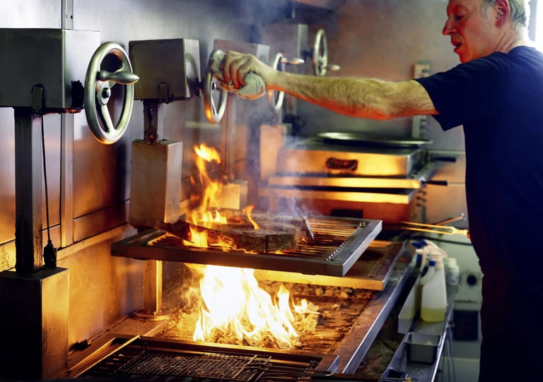 El Capricho, led by visionary chef José Gordon, is internationally acclaimed as one of the world’s greatest temples of beef. Gordon has dedicated his career to the breeding, aging, and preparation of oxen, believing that time, respect for the animal, and natural feeding are essential to achieving the perfect flavor. The restaurant has been praised by international media and gastronomic critics as offering the finest steak experience in Europe, and it was named the Best Restaurant in Europe by the prestigious ranking 101 World’s Best Steak Restaurants. To honor tradition and achieve unparalleled taste, Gordon chooses to grill his meats over holm oak (leccio) charcoal, which enhances the natural aromas and gives El Capricho’s beef its signature depth and character