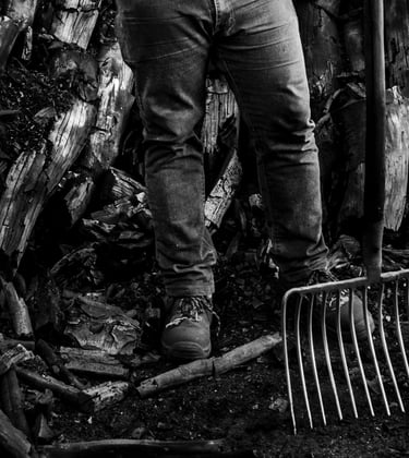 Tutto comincia nei boschi, dove viene scelta con rispetto e sapienza la migliore legna di leccio, destinata a trasformarsi in Leccio Prime. È qui che prende forma la carbonaia, un’imponente cupola di legna, ricoperta di paglia e terra, che diventa il cuore vivo di un processo unico.